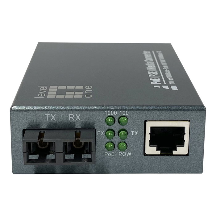 LevelOne GVT-2013 Convertidor Mediaconversor Gigabit Ethernet 10/100/1000T RJ45 a SC Multimodo Fibra Óptica con PoE (Power over Ethernet) 30W, 500m