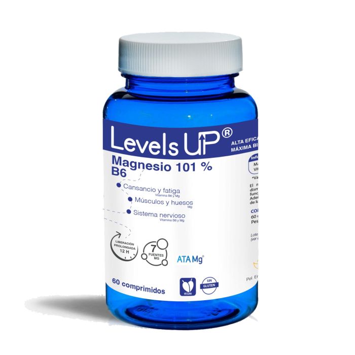 Por 2 comprimidos Magnesio378 mg101%* Vitamina B61,4 mg100%* L-taurina60 mg L-glicina60 mg