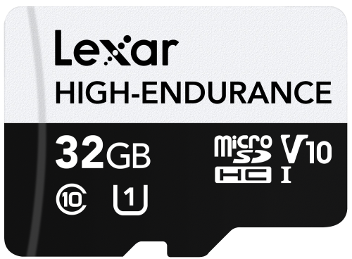 Lexar High-Endurance. Capacidad: 32 GB, Tipo de tarjeta flash: MicroSDHC, Clase de memoria flash: Clase 10, Tipo de memoria interna: UHS-I, Clase de velocidad UHS: Class 1 (U1), Clase de velocidad de vídeo: V10