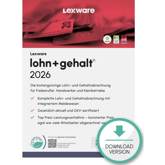 Lexware Lohn+Gehalt 2026 - Software de Nóminas y Salarios para 1 Dispositivo, Licencia Anual ESD-Download