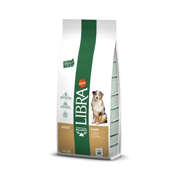 Affinity es una marca de confianza que ofrece productos de alta calidad para el cuidado de tu perro. Este producto es el Libra Canine Adult Cordero 14 kg, un saco de pienso completo y equilibrado formulado para perros adultos.