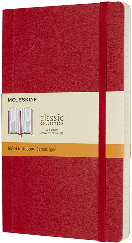 Moleskine Cuaderno Clásico Tapa Blanda QP616F2 Rojo Escarlata L (13x21cm) Rayada 192 Páginas