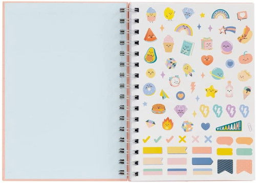 Bonita por fuera y por dentro, gracias a la hoja de pegatinas que incluye. 200 páginas cuadriculadas, encuadernación en espiral y 1 hoja de pegatinas. Un producto único y con materiales de calidad.