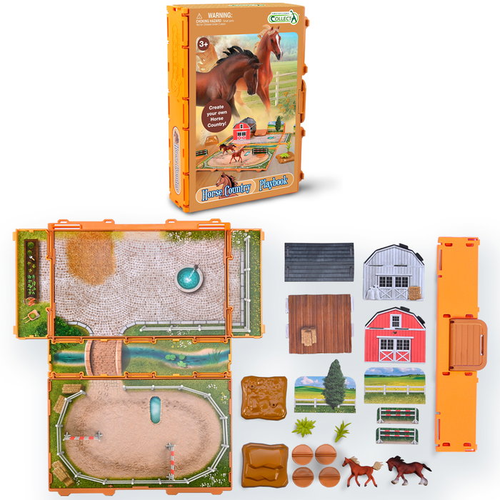 El Libro-Juego vida ecuestre de Collecta es un set interactivo que permite crear tu propio mundo ecuestre. Incluye un maletín plegable con un escenario detallado y múltiples accesorios como rocas, vegetación y figuras de animales. Ideal para fomentar la imaginación y el juego educativo.