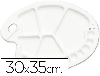 Paleta ovalada de plástico con diferente número de huecos para adaptarse a las necesidades de cada artista. Para diestros.