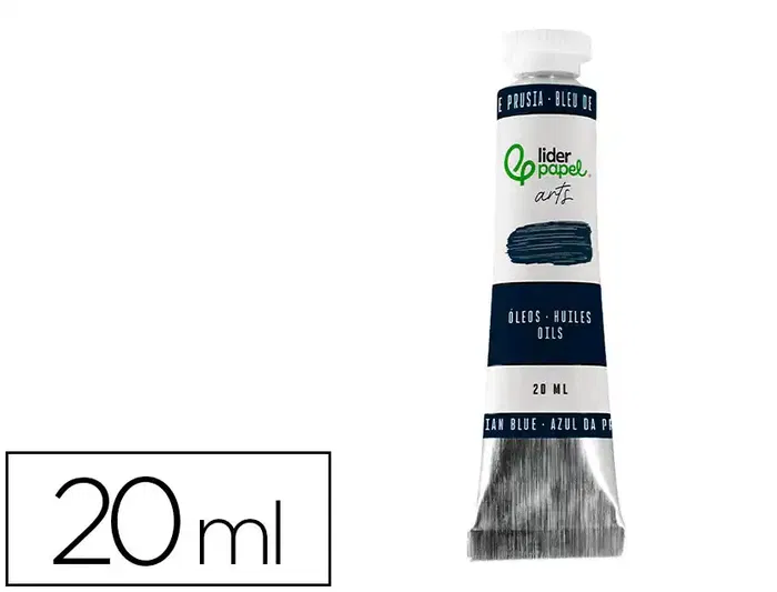 Pintura al óleo tubo de aluminio de 20 ml en color Azul de prusia.Los óleos son un tipo de pintura que está hecha a base de pigmentos y aceites vegetales que proporcionan unos colores intensos.Este tipo de pintura es conocido por su rica textura y su capacidad para crear colores vibrantes y duraderos.Los óleos se secan lentamente, lo que permite a los artistas trabajar en detalles y hacer correcciones durante un período prolongado.Además, se pueden aplicar en capas, lo que da profundidad y dimensión a las obras de arte.Correcta aplicación con los pinceles de cerda Liderpapel.Características Principales- Textura Rica: Las pinturas al óleo ofrecen una textura espesa y cremosa que permite una aplicación suave y mezclas detalladas.- C- Colores Profundos: Proporcionan colores intensos y profundos que pueden mantenerse vibrantes durante siglos.- Tiempo de Secado Lento: Permite trabajar en la pintura durante un período prolongado, ideal para técnicas de mpas.Ventajas- Durabilidad: Las pintura