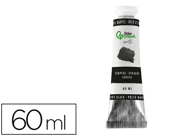 Pintura gouache/témpera liderpapel tubo de aluminio de 60 ml color Negro marfil. La témpera es una pintura a base de agua que ha sido utilizada durante siglos, conocida por su opacidad y capacidad para producir colores vibrantes y mates. Características Principales Opacidad: La témpera es altamente opaca, lo que permite cubrir completamente las capas anteriores de pintura y crear colores sólidos y uniformes. Secado Rápido: Se seca rápidamente, lo que es ideal para proyectos que requieren múltiples capas en poco tiempo. Textura Mate: Una vez seca, la témpera tiene un acabado mate, lo que la diferencia de otras pinturas como los óleos o acrílicos que pueden tener un brillo más pronunciado. Técnicas y Aplicación Capas y Mezclas: La ta témpera se puede aplicar en capas finas o gruesas y se mezcla fácilmente con agua para ajustar la consistencia y la transparencia. Superficies: Es adecuada para una variedad de superficies, incluyendo papel, cartón, madeo. También se utiliza en murales y dec