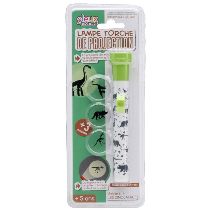 - Linterna proyector con 3 discos de proyecciones intercambiables. Proyecta los dibujos en la oscuridad, así los niños los pueden calcar, contar historias, etc.