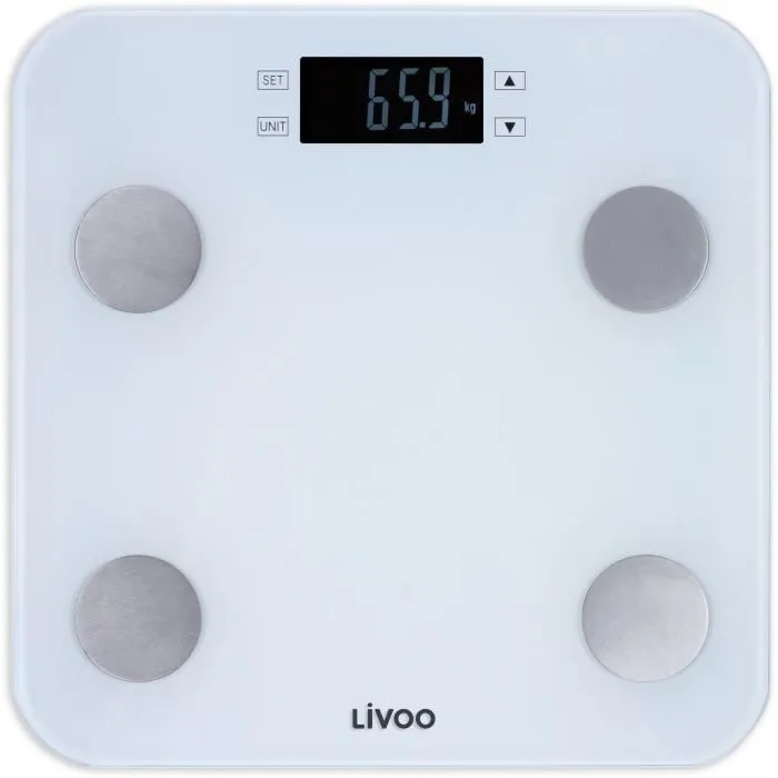 Livoo DOM427W Báscula de Peso Corporal - 13 Memorias, 180 kg, Pantalla LCD de Vidrio Templado - Blanco