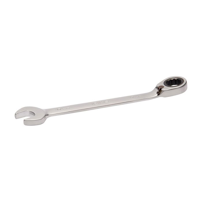 Llave combinada con carraca en dimensiones métricas. palanca de cambio rápido de sentido izquierda/derecha. ángulo de 15º para mejorar la manipulación y el acceso. acabado: cromado mate. material: aleación de acero de alto rendimiento. dureza: 40-50hrc. normas: iso1711-1 y din3113. 1blíster