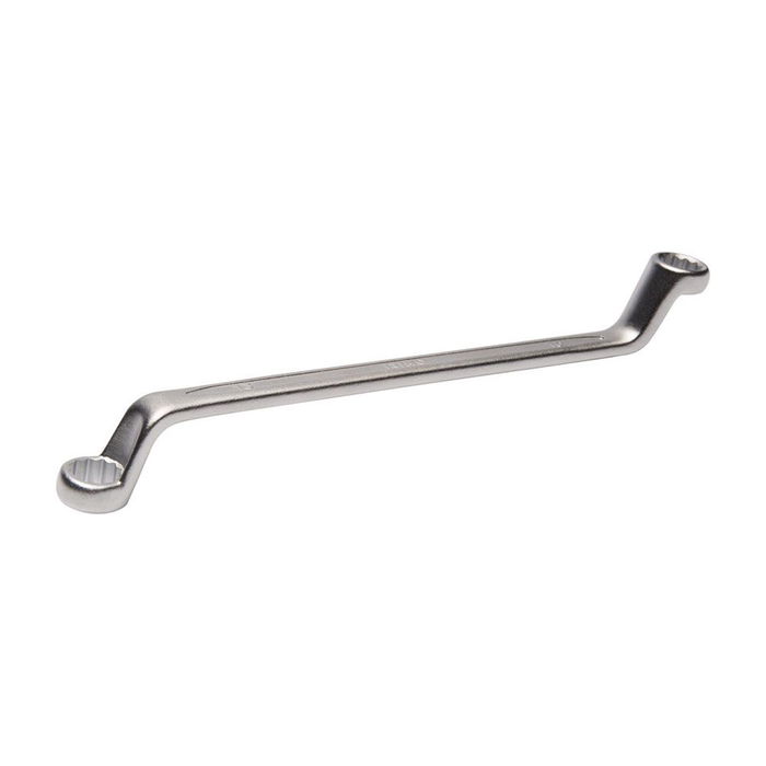 Llave de estrella extra-acodada en dimensiones métricas. acabado: cromado mate. material: aleación de acero de alto rendimiento. dureza: 42-48hrc. normas: iso10104 y din838. -1blíster y 2embalajes industriales