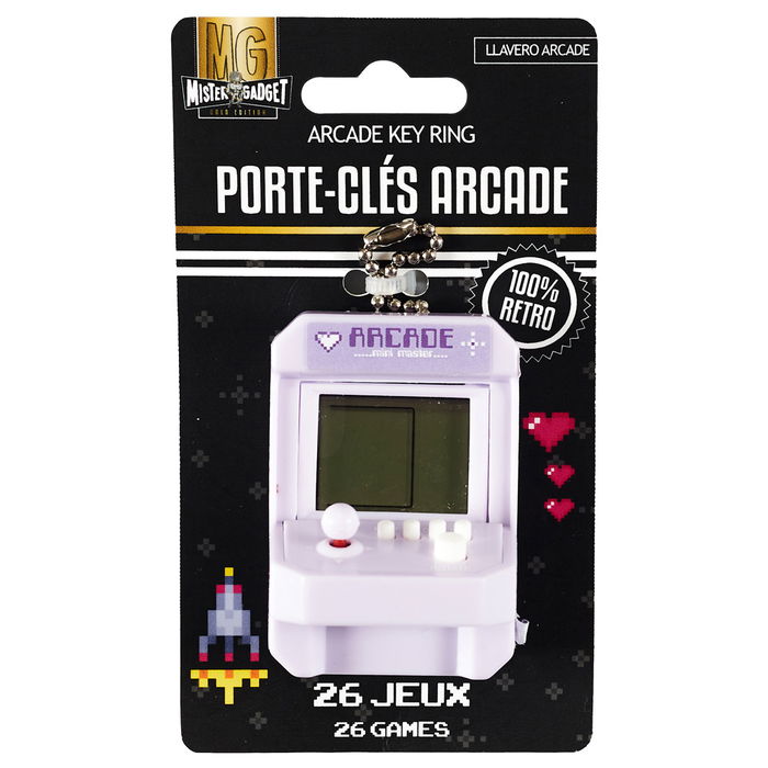 Mister Gadget Llavero 26 Juegos Arcade Lila, Verde Plástico Con 26 Juegos Incluye Pilas AG13 LRR44 4x4 cm h.6 cm