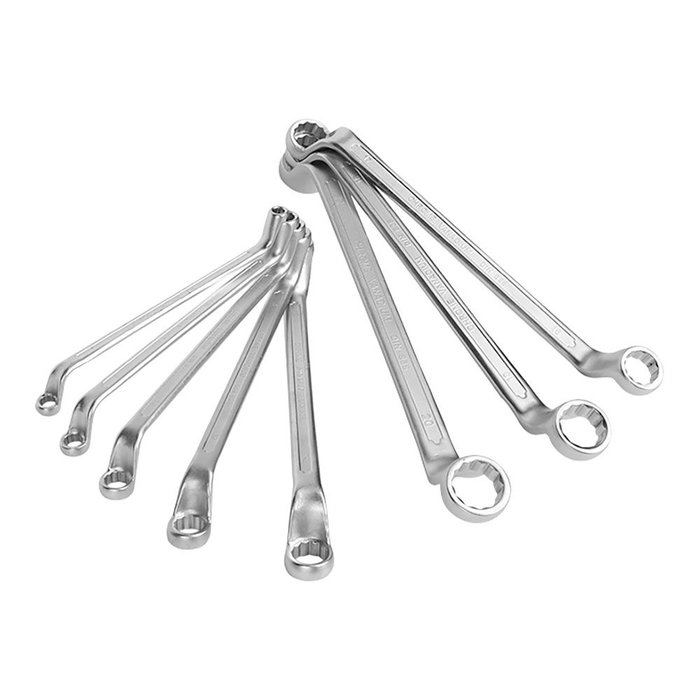 Llaves de estrella acodadas dobles, hechas al cromo-vanadio, juego 8 piezas - tamaños: 6-7, 8-9, 10-11, 12-13, 14-15, 16-17, 18-19, 20-22 mm