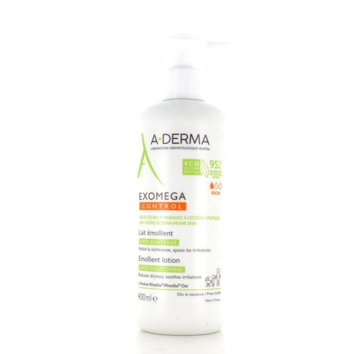 A-DERMA Exomega Control Leche Emoliente Antiirritación Piel Seca y Atópica para Bebés y Adultos, 400 ml
