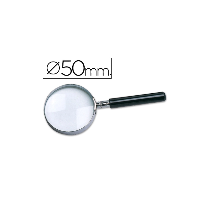 Q-connect Lupa de Cristal con Aro Metálico y Mango de Plástico Negro, 50 mm