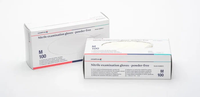 Guantes de examen de nitrilo sin polvo Covetrus. Garantizan una barrera de protección óptima. Disponible en 5 tamaños para una máxima comodidad de ajuste. Ambidiestros, con puños enrollados. Gramaje para el tamaño M: 3.5.