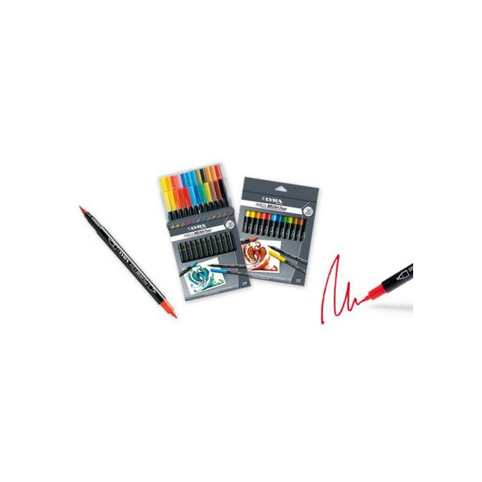 Lyra Rotulador Aqua Brush Duo Caja de 24 Colores con Punta Pincel y Punta Fina para Artistas y Diseñadores