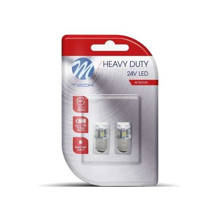 M-Tech L989R Blister 2X LED BAY15D 8xSMD5050 24V Rojo Luz de Freno Marcha Atrás Antiniebla