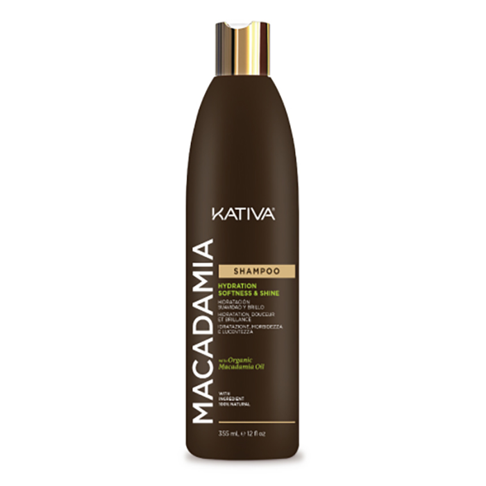 Kativa Champú Hidratante Macadamia Revitalizante para Cabello Dañado y Deshidratado, Aporta Suavidad, Brillo y Elasticidad 355 ml