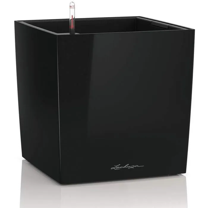 Maceta LECHUZA Cube Premium 50 - juego completo, negro brillante