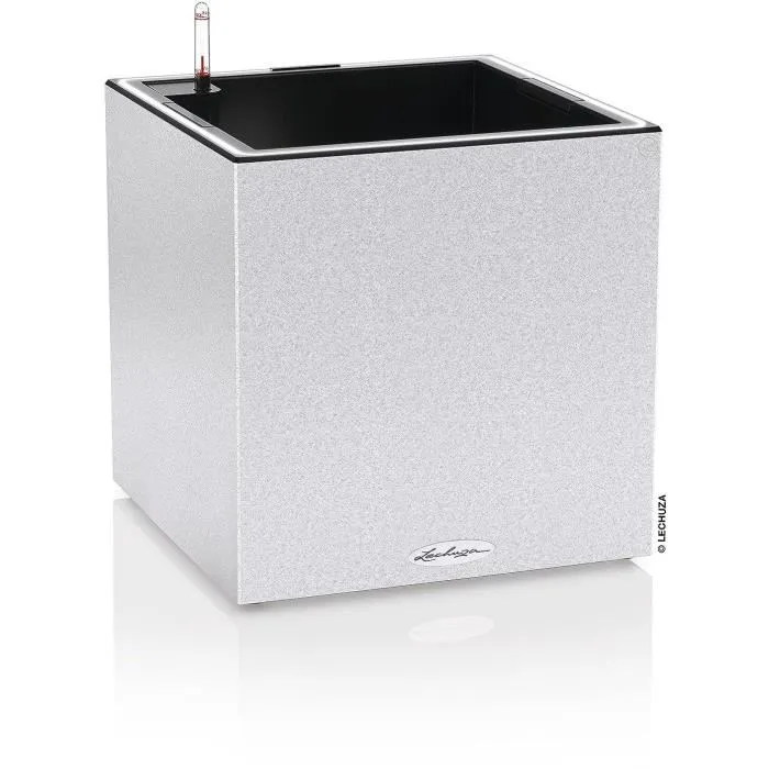 Macetero LECHUZA Canto Stone Cube 40 - kit LED completo, blanco cuarzo
