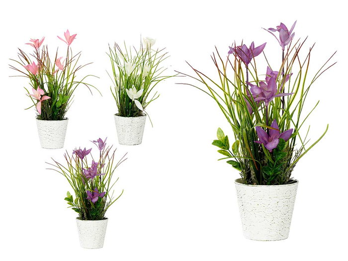 IBERGARDEN Maceta Envejecida con Flores Surtidas Colores Blanco Lila Rosa 22x37.5x15 cm (Set de 12)