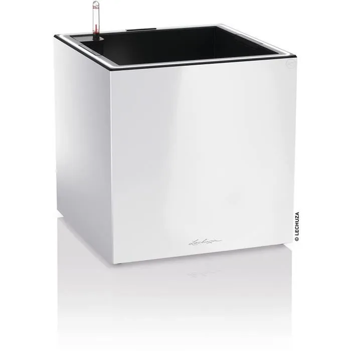 Macetero LECHUZA Canto Premium Cube 40 - Juego completo LED, blanco brillante