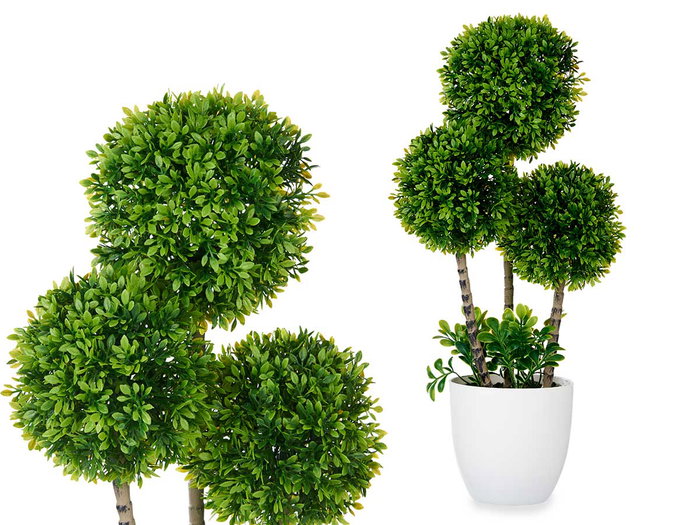 Ibergarden Maceta decorativa con 3 bolas, plástico, color verde y blanco, 21x45.5x12 cm (Set de 6)