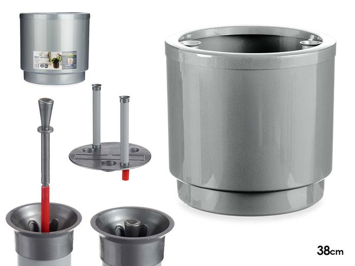 MACETA PLASTICO CON RESERVA AGUA 38CM PLATA