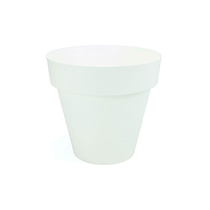 Maceta de inyección color blanco ø14 cm .pensada para uso en exteriores por su alta resistencia a los rayos solares, su robustez y su textura semi mate