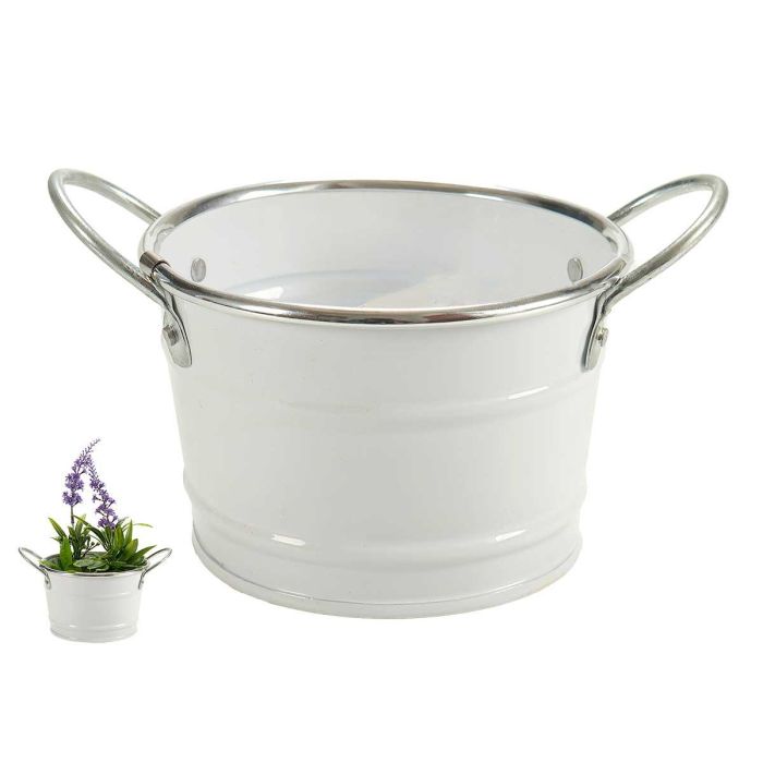 MACETERO BAJO C ASAS BLANCO FILO PLATA