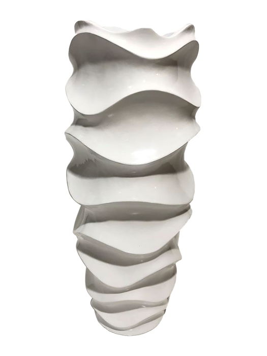 DKD Home Decor Macetero Moderno Blanco 44 x 101 x 44 cm Fibra de Vidrio con Diseño Ondulado