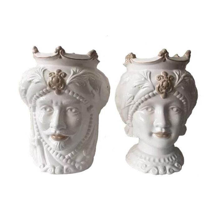DKD Home Decor Macetero Mediterraneo Sicilia 2024 Blanco Beige Porcelana 10 x 14.5 x 10 cm (4 Unidades)