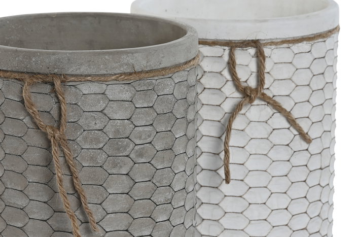 DKD Home Decor Macetero Shabby Blanco Gris Cemento Set de 2 (17 x 21 x 17 cm)