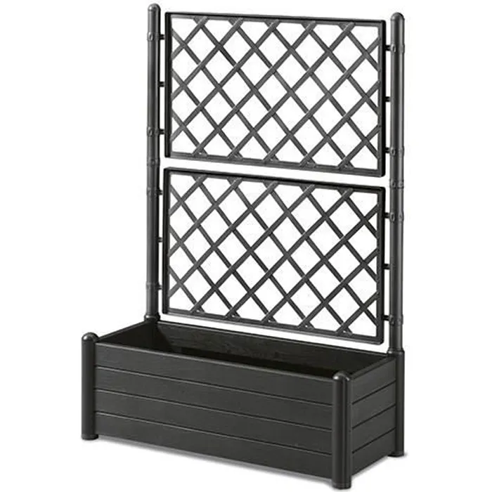 Macetero rectangular con enrejado - Acabado en madera - Dimensiones: 100x43xH142cm - Capacidad: 80L - Color: grafito.