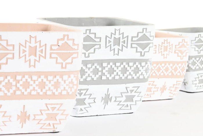 DKD Home Decor Macetero Tropical de Cemento para Plantas Gris Beige - Set de 2 Unidades, 14x14x13 cm