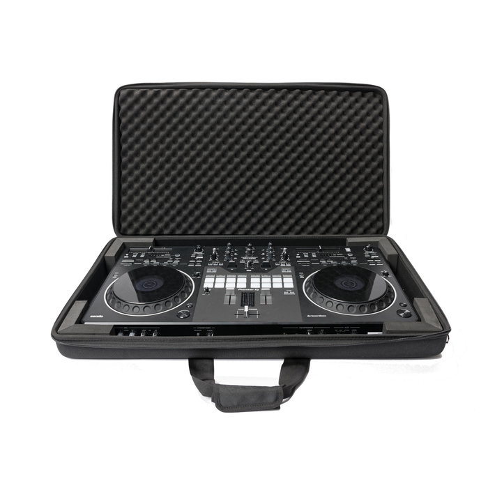 Funda rígida superligera y compacta que ofrece una forma segura y cómoda de transportar tu controlador DDJ-REV5 y DDJ-REV7 de Pioneer. Fabricada con una carcasa de EVA moldeada Durashock ligera y rígida, el interior está equipado con esquinas de espuma EVA de alta densidad y espuma egg-crate para proteger las jog wheels, los mandos y los faders. Dimensiones exteriores: 83 x 46 x 14 cm. Dimensiones interiores: 73 x 37 x 11 cm. Peso: 8,3 kg