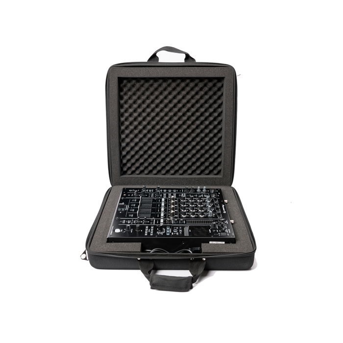 Estuche de transporte para Pioneer DJM-V10 / DJM-A9. Fabricada con espuma EVA moldeada Durashock rígida de 8 mm de grosor y revestimiento exterior de poliéster impermeable. Cremallera resistente. Incluye espuma de huevo extraíble e interior totalmente acolchado. Cómodas asas de transporte reforzadas con remaches y correa para el hombro (con hebillas metálicas). Compatible con la funda Decksaver®. Medidas exteriores: 57 x 56 x 15 cm. Medidas interiores DJM-V10: 46 x 44 x 7 cm / DJM-A9: 43 x 41 x 7 cm (ranura para equipo). Peso: 2,3 kg