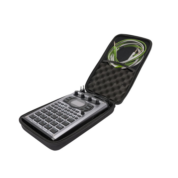 Estuche rígido diseñado a medida para el sampler SP-404 MK2 de Roland y otros modelos como SP-404, SP-404SX o SP-404A. Fabricado con espuma EVA moldeada Durashock de 5 mm de grosor y carcasa exterior de poliéster impermeable. Cremallera resistente. Incluye bolsillo de malla para guardar los cables. Incluye espuma de huevo extraíble para proteger los mandos y las almohadillas. Compatible con la tapa Decksaver®. Cabe en cualquier bolsa MAGMA.