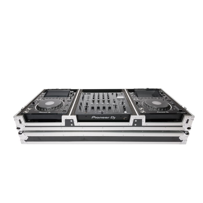 Flightcase diseñado específicamente para transportar 2 reproductores CDJ/Multimedia y 1 mezclador de club de 6 ó 4 canales, como Pioneer DJM-V10, DJM-A9, Ecler Warm 4 o AlphaTheta Euphoria. Es universalmente compatible con todos los modelos actuales de Pioneer DJ, Denon, Allen & Heath, Ecler, Rane y Reloop, y se puede ajustar a diferentes tamaños de dispositivos utilizando las tiras de espuma incluidas. Fabricada con contrachapado laminado de vinilo de 9 mm, robustos perfiles de aluminio, cierres de mariposa de alta resistencia y ruedas de marcha suave, ofrece la máxima protección para el uso móvil en la carretera. Medidas exteriores: 80 x 59 x 22,5 cmMedidas interiores: 33,1 x 42,5 x 8,4 cm (compartimento CDJ) 43,7 x 45,4 x 8,4 cm (compartimento mezclador)Peso: 21,5 kg.
