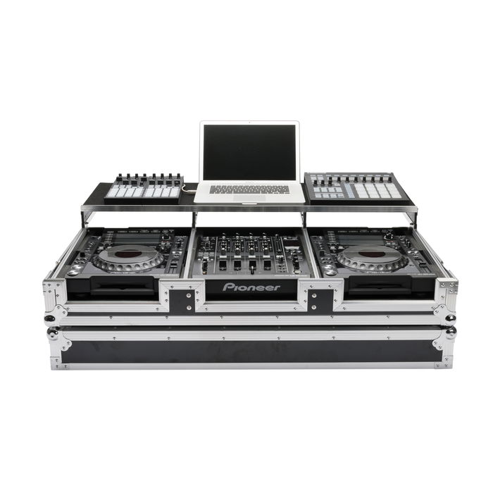 Flightcase para transporte y almacenaje de juego de 2 reproductores y 1 mezclador. Construcción resistente de contrachapado laminado de vinilo de 9 mm. Perfiles de aluminio sólido y cierres con resorte. Incluye una plataforma de deslizamiento (extraíble) para el portátil y equipo adicional. Espuma adicional para adaptarse a varios modelos de mezcladores y reproductores de CD. 3 cubiertas de panel frontal removibles. Cómodos puertos de acceso a cables. Interior completamente acolchado. Incluye ruedas empotradas para facilitar el transporte. Compatible con Pioneer DJM-900 NXS2 / 900 NXS / SRT / 800 / 700 / 600, CDJ-2000NXS2 / 2000NXS / 900 / 850 / 800 y XDJ-1000, Allen & Heath PX5, DB4, DB2, Xone 92 / 62 / 43C, Denon SC-6000 / 6000M / 5000 / 5000M / 3900 / 2900, Denon X-1850 / 1800 / X1600, Reloop RMX-90 DVS, RM-80 Digital, Ecler NUO4, Rane MP2015 / 68 / 64. Dimensiones exteriores: 115,5 x 56 x 24,5 cm. Dimensiones internas: 39,5 x 32 x 8,4 cm (reproductor) / 43,8 x 33,1 x 8,4 cm (mezclador). Peso: 25 kg