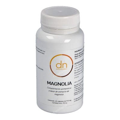 Indicaciones: Complemento alimenticio a base de extracto de magnolia. La corteza de la magnolia (Magnolia officinalis) es de composición compleja y muy aromática, los ingredientes activos más destacados son el Magnolol y el Honokiol, dos compuestos polifenólicos que son responsables en gran parte de algunas de las propiedades que se le atribuyen, como por ejemplo la ansiolítica.
