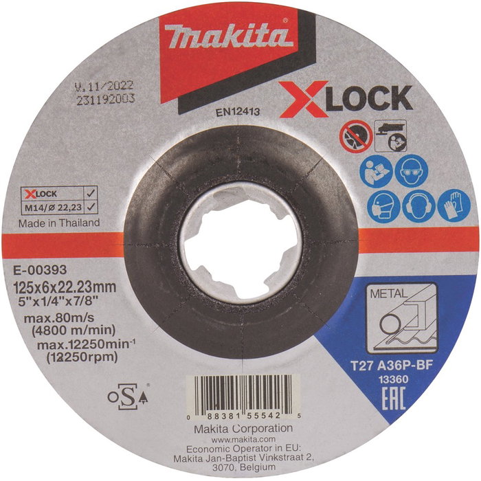 Makita E-00393, Disco de desbaste, Metal, Makita, 2,22 cm, 12,5 cm, 6 mm