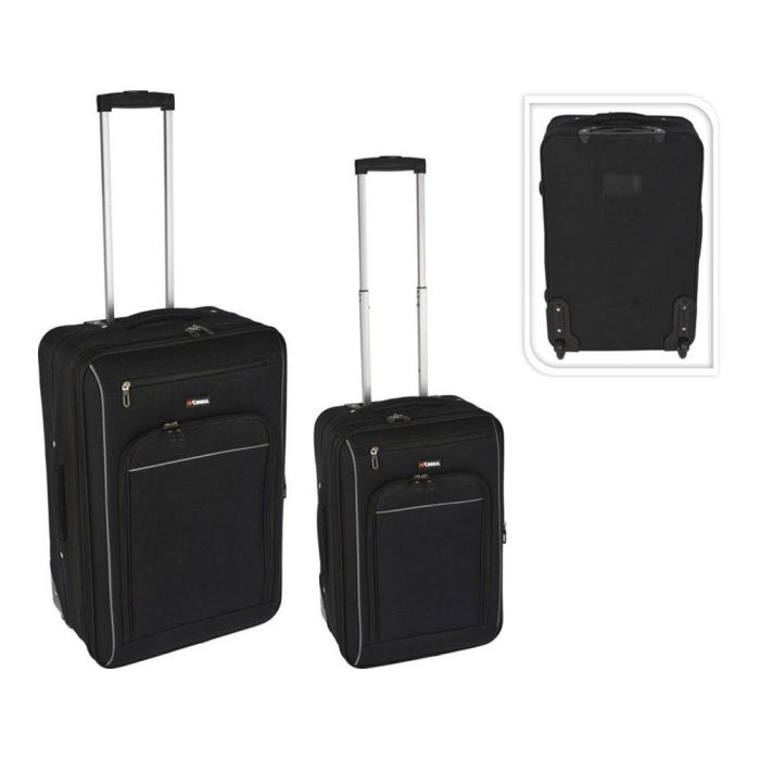 Proworld Set 2 Maletas de Viaje Negras Poliester Ruedas Aluminio 36x24x53cm 44x26x63cm