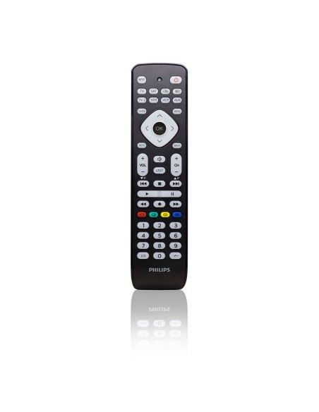 Control remoto universal Philips capaz de gestionar hasta 8 dispositivos diferentes. Diseñado para simplificar tu experiencia de entretenimiento en casa, sustituye múltiples mandos a distancia con uno solo. Ideal para televisores, reproductores de DVD, Blu-ray, decodificadores, sistemas de audio y más.