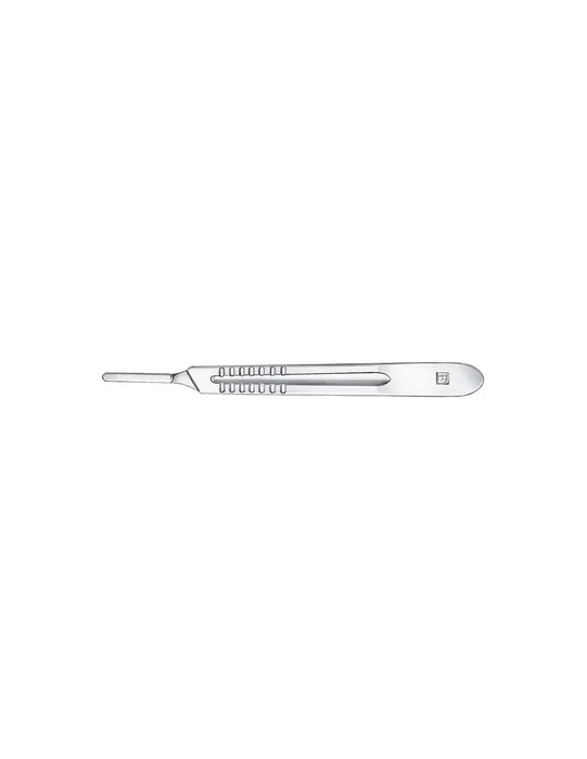 Mango de bisturí número 4 de 135 mm, ideal para procedimientos médicos y quirúrgicos precisos.