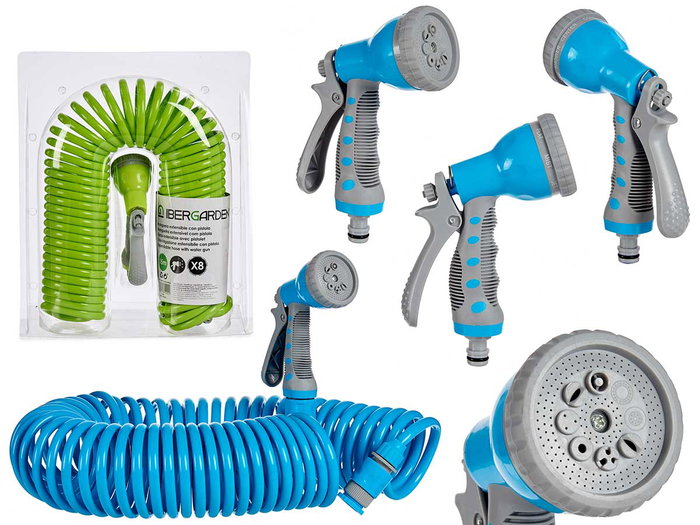 IBERGARDEN Manguera 15 m con 8 Boquillas Surtidas, Colores Azul y Verde, Dimensiones 11x40x33cm (Set de 6)