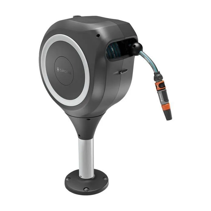 Gardena RollUp M Enrollador de Manguera Automático para Terraza, Blanco, Longitud 20 m, Manguera 13 mm