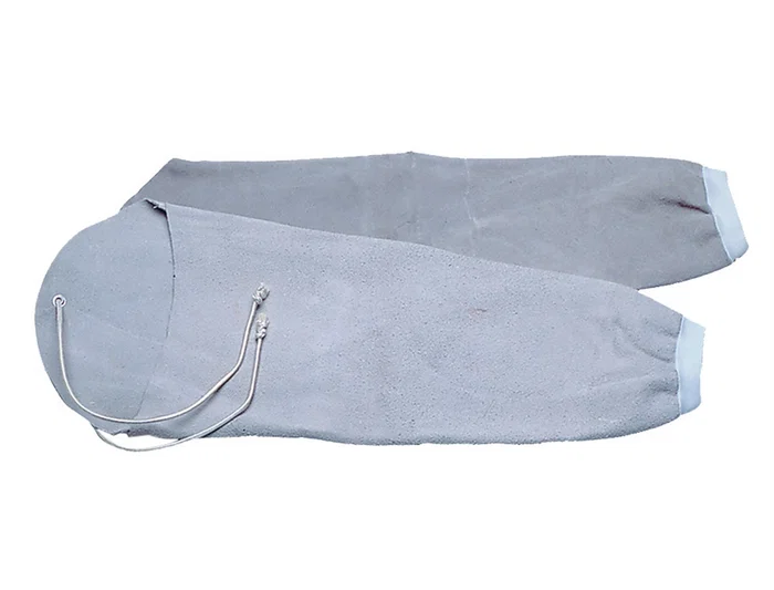 Manguito para soldador de cuero al cromo, destinado a la protección del brazo, desde la muñeca hasta el hombro, con puño elástico y cordón.