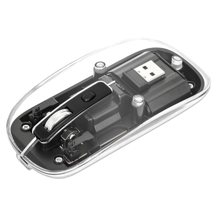 Manhattan 190268, Ambidextro, Óptico, RF inalámbrico, 1600 DPI, Negro, Transparente